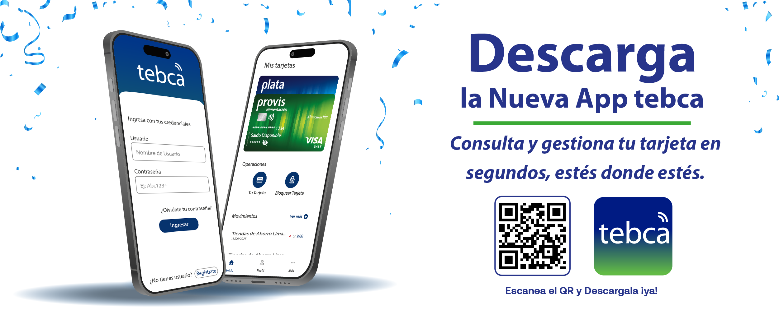 - Descargar el App Tebca desde tu celular App Store (iOS) y Play Store (Android).